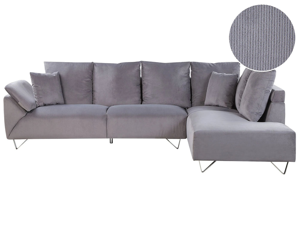 Corner Sofa Grey Corduroy Fabric 266 x 181 cm Cushions Chromed Legs Beliani
