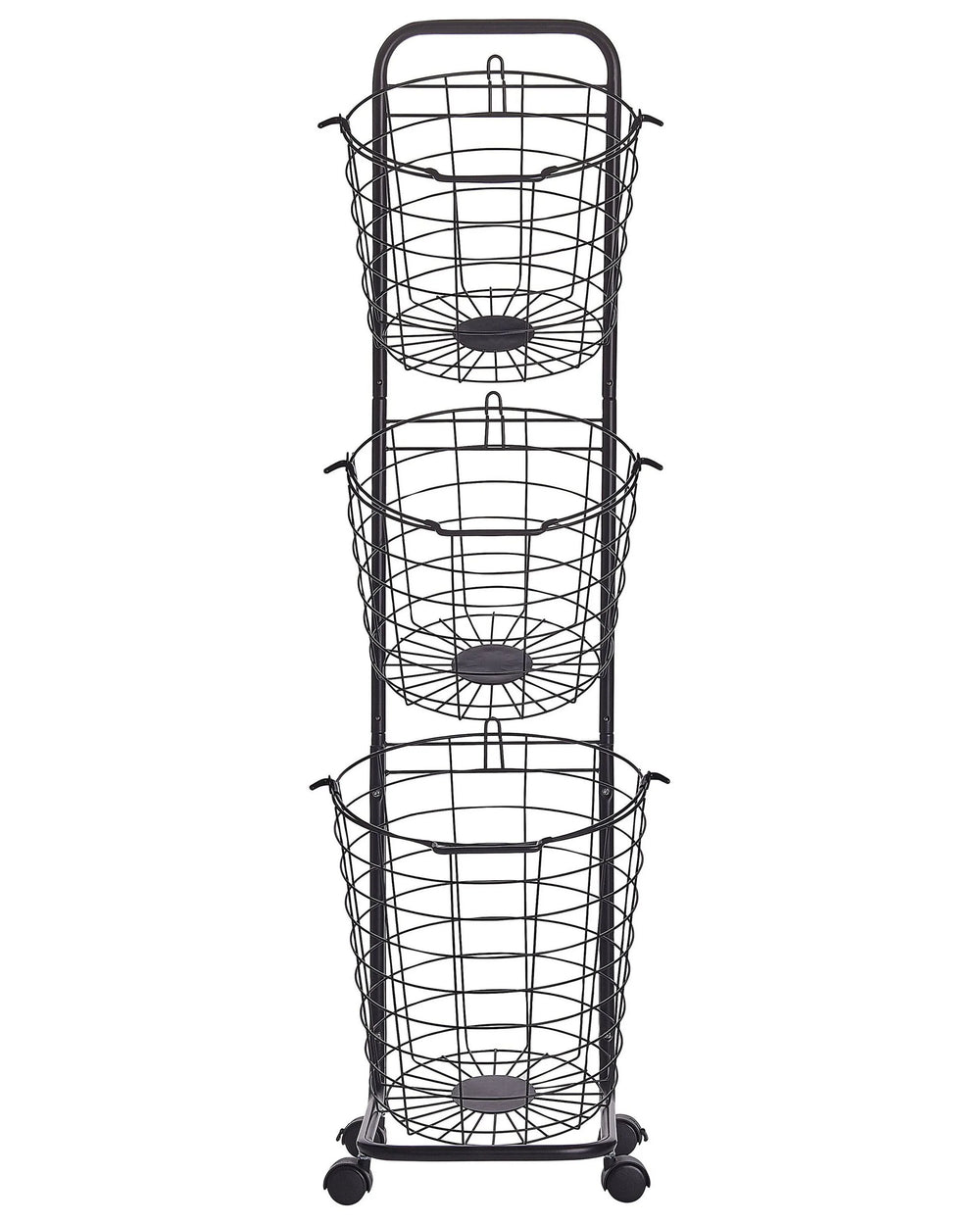 3 Tier Wire Basket Stand Black Metal with Castors Handles Detachable Kitchen Bathroom Storage Accessory for Towels Newspaper Fruits Vegetables Beliani is backordered and will ship as soon as it is back in stock.