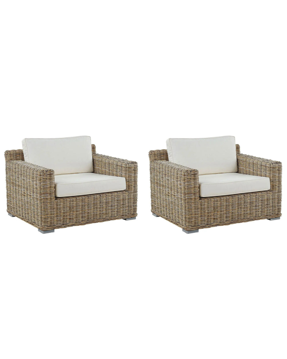 Set of 2 Garden Armchairs Light Brown Rattan Wicker Outdoor 2 Chairs Set with White Cushions Beliani