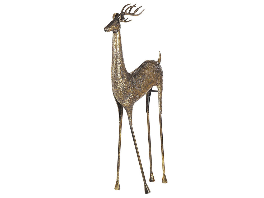 Statue Gold Reindeer Metal Gloss Finish 126 cm Christmas Accent Figure Decorative Item Beliani