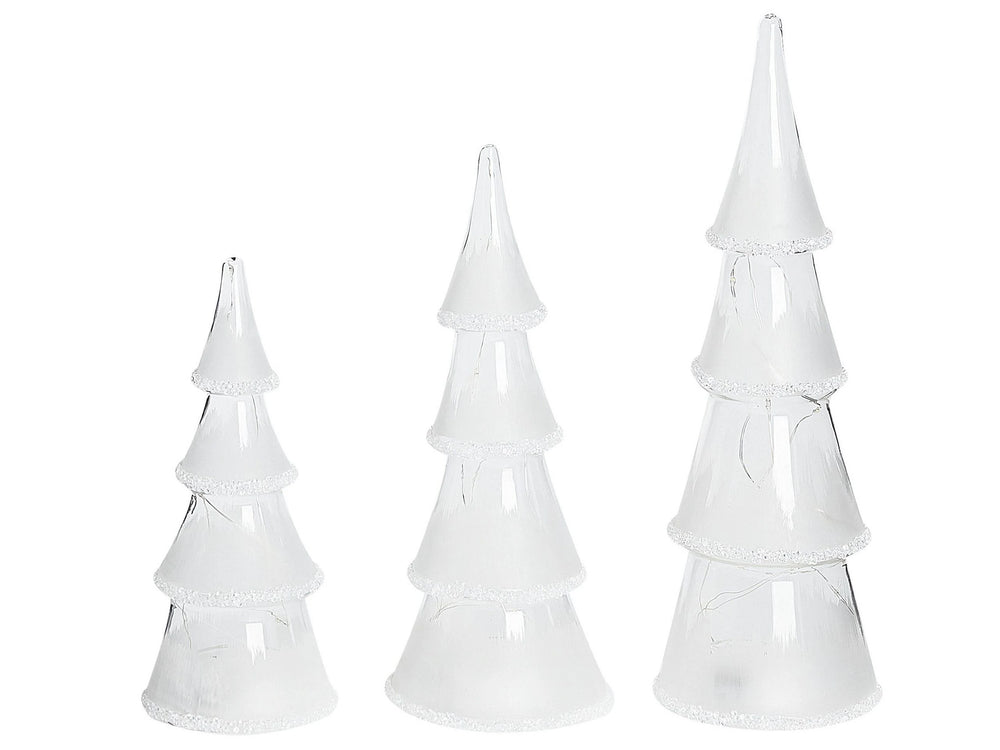 Set of 3 Decorative Christmas Trees White Glass LED Illuminated Figurines Holiday Season Festive Decoration Beliani
