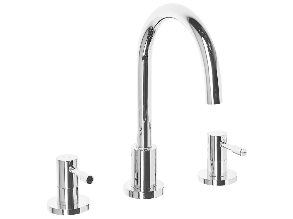 Basin Mixer Tap Silver Brass Two Levers Curved Spout Beliani