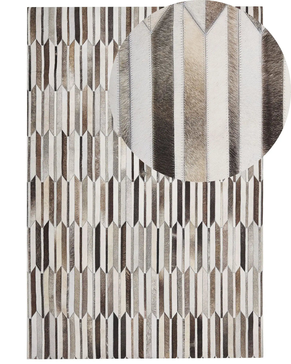 Rectangular Area Rug Beige and Brown Cowhide Leather 160 x 230 cm Patchwork Retro Beliani