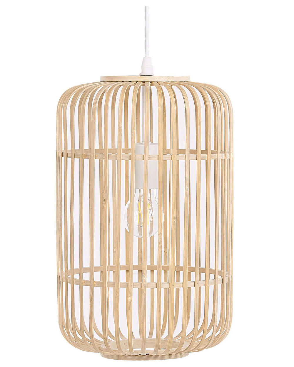Pendant Lamp Light Wood Bamboo Oval Shade Hanging Ceiling Lamp Beliani