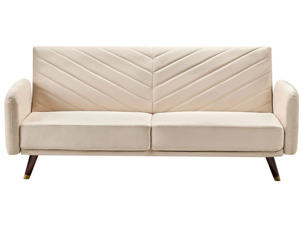 Sofa Bed Beige Velvet Fabric Retro Living Room 3 Seater Wooden Legs Track Arms Beliani is backordered and will ship as soon as it is back in stock.