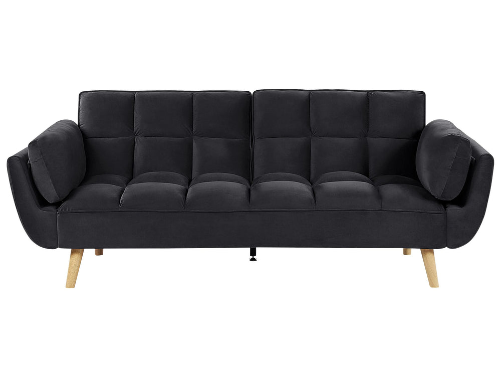 Sofa Bed Black Velvet Fabric 3 Seater Wooden Legs Foam Filling Split Back Biscuit Padding Beliani is backordered and will ship as soon as it is back in stock.