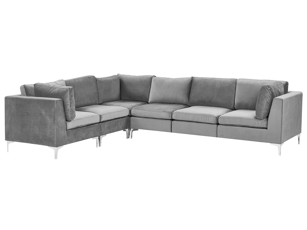 Right Hand Modular Corner Sofa Grey Velvet 6 Seater L-Shaped Silver Metal Legs Glamour Style Beliani is backordered and will ship as soon as it is back in stock.