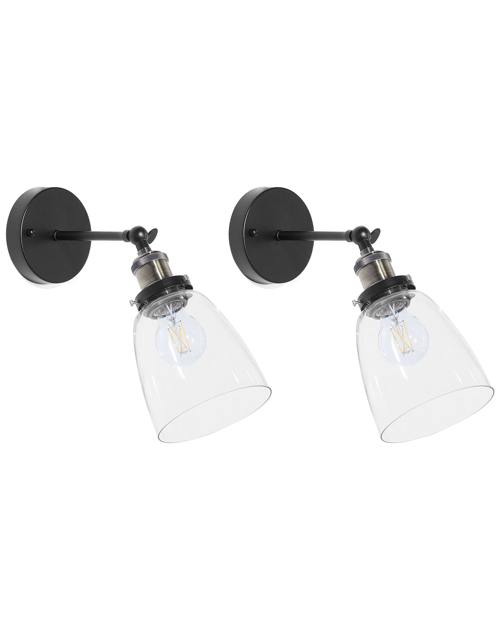 Wall Lamps Black Glass Metal Shade Adjustable Industrial Beliani