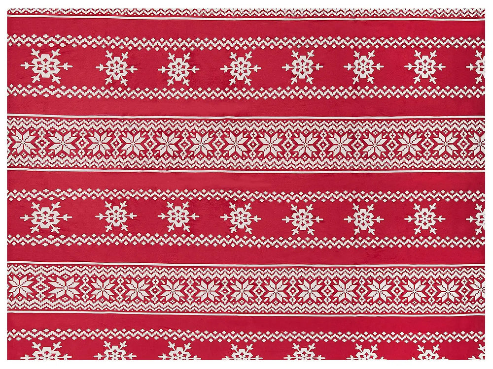 Blanket Throw Red Flannel 150 x 200 cm Winter Fluffy Classic Winter Seasonal Christmas Sweater Pattern Beliani