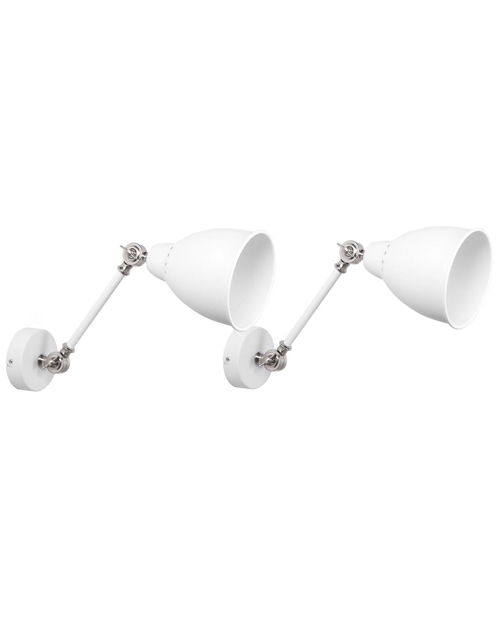 2 Wall Lamps Set White Metal Adjustable Light Position Swing Arm Modern Beliani