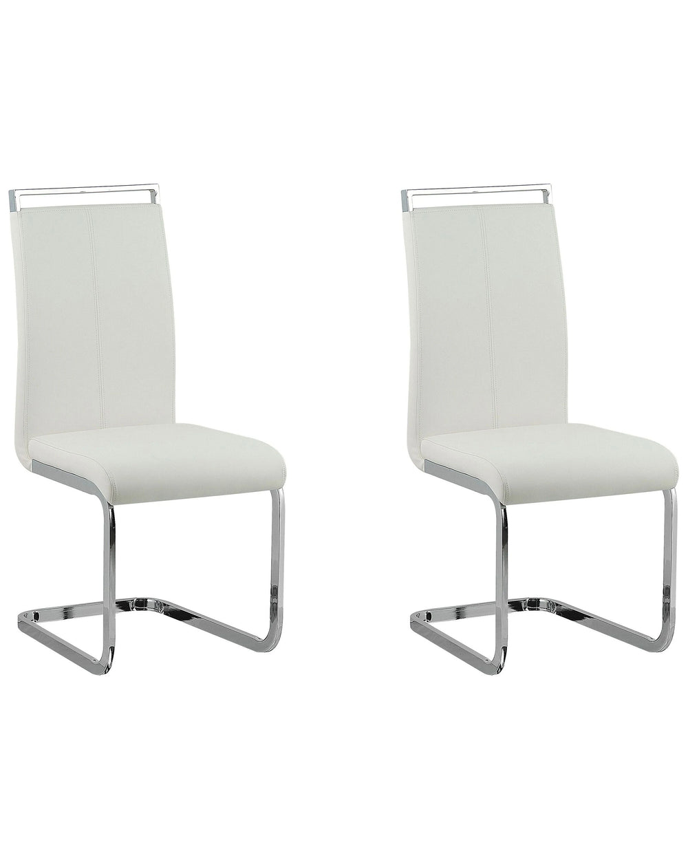 Set of 2 Dining Chairs White Faux Leather Upholstered Seat High Back Cantilever Conference Room Modern Beliani