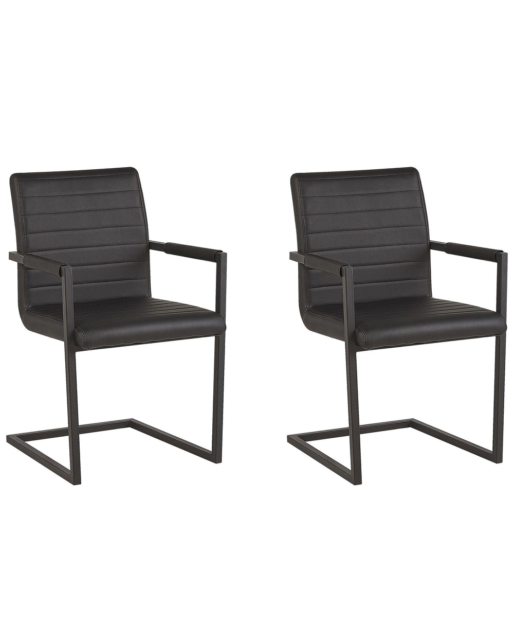 Set of 2 Cantilever Chairs Faux Leather Black Upholstered Chairs Modern Retro Dining Room Conference Room Beliani