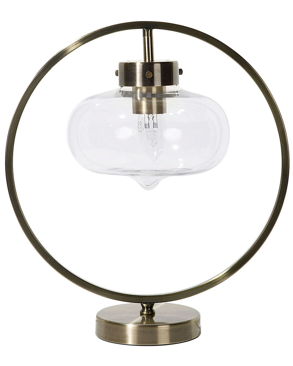 Table Lamp Bedside Light Gold Metal Round Open Geometric Shade Naked Bulb Beliani