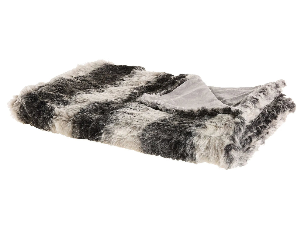 Blanket Grey and White Acrylic 150 x 200 cm Fluffy Throw Faux Fur Striped Pattern Retro Design Beliani