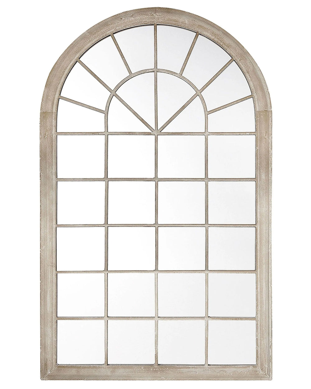 Wall Mirror Beige Metal Frame 77 x 130 cm Vintage Arched Window Wall Decor Weathered Look Beliani is backordered and will ship as soon as it is back in stock.