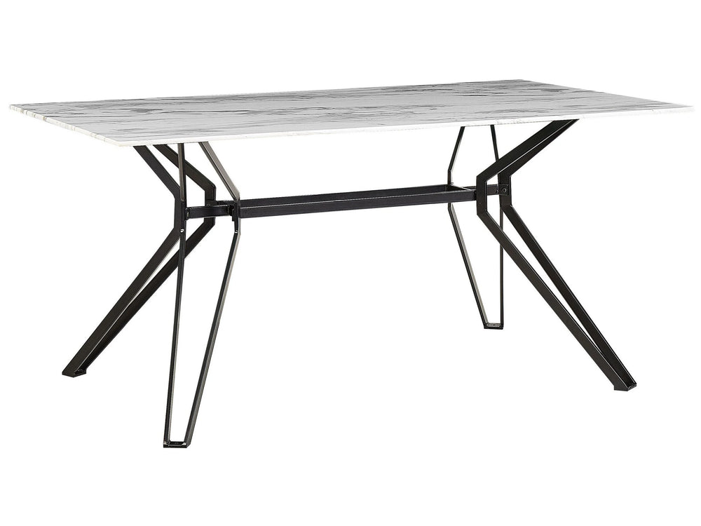 Dining Table Marble Effect Veneer Black Metal Legs Tempered Glass Top Rectangular 160 x 90 cm Modern Design Beliani is backordered and will ship as soon as it is back in stock.