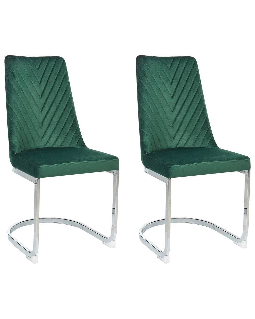 Set of 2 Dining Chairs Green Velvet Armless High Back Cantilever Chair Living Room Beliani