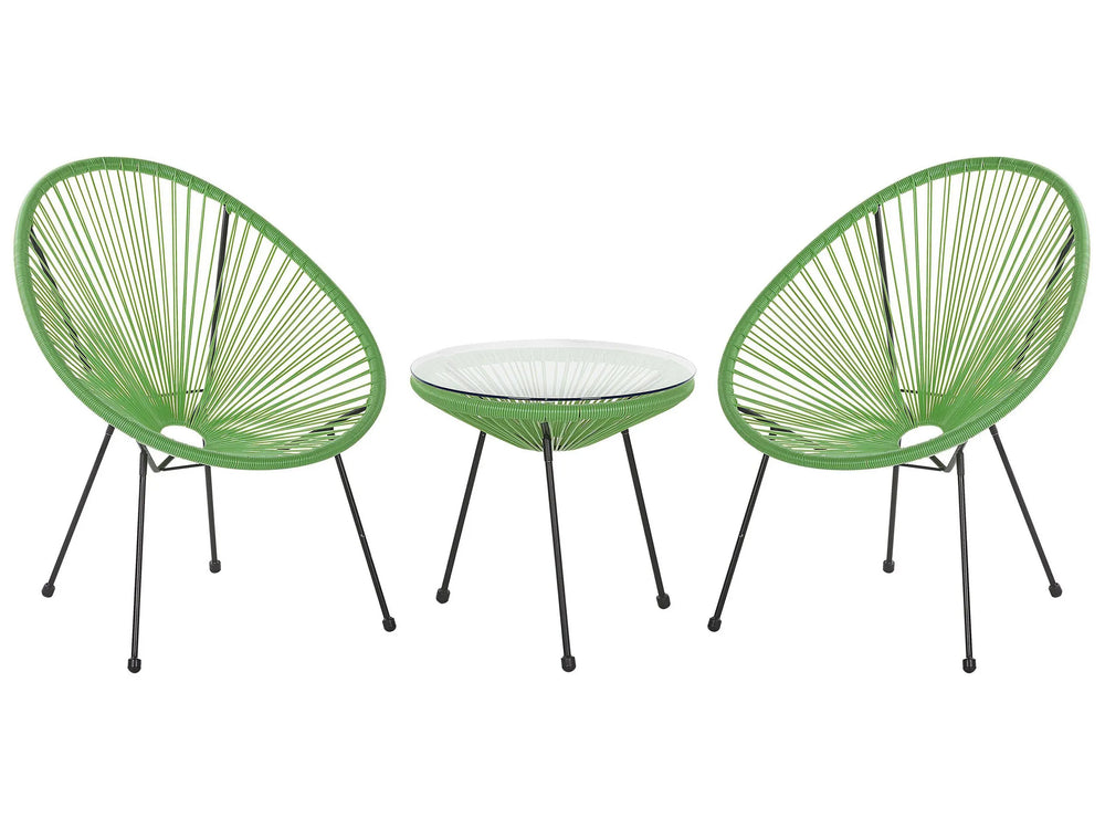 Bistro Set Green PE Rattan 3 Piece 2 Seater Modern Beliani