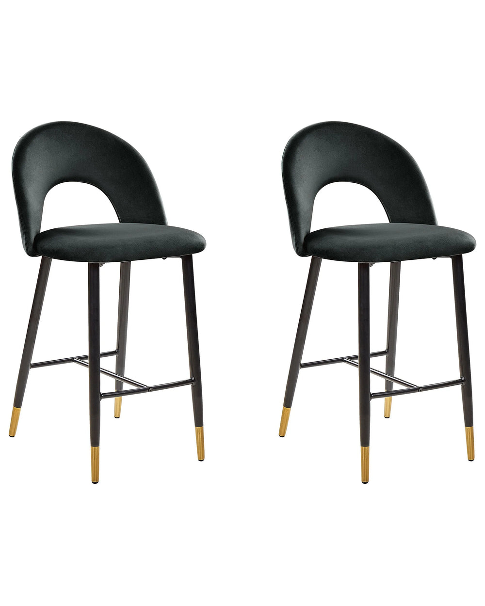 Set of 2 Bar Chairs Black Velvet Black Steel Retro Design Golden Ends Dining Room Beliani is backordered and will ship as soon as it is back in stock.
