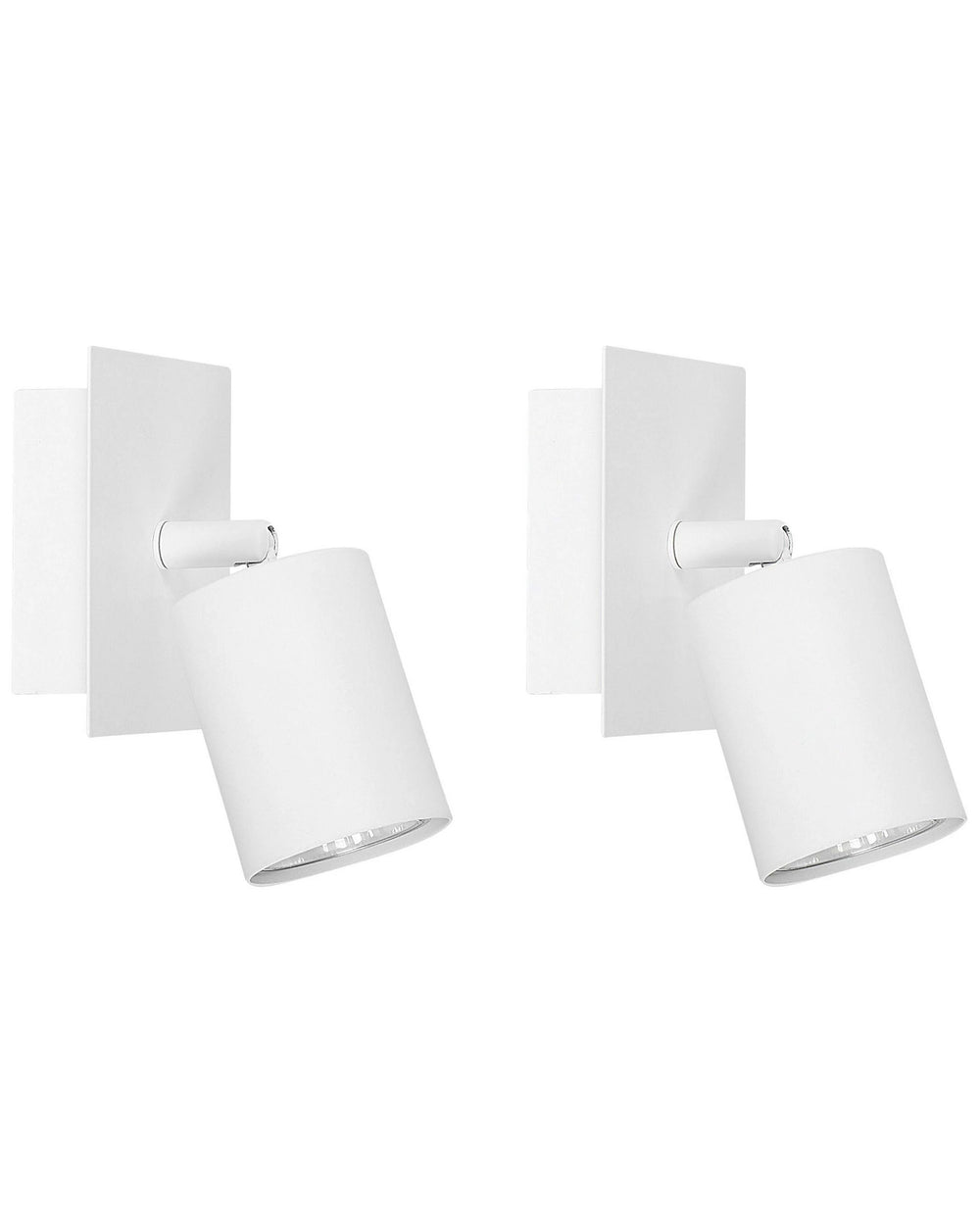 Set of 2 Wall Lamps White Metal Sconce Adjustable Light Glamour Minimalist Design Bedroom Lighting Beliani