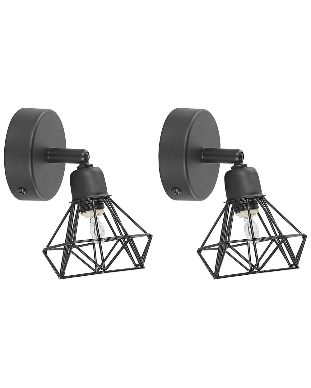 Set of 2 Wall Lamp Black Metal Cage Shade Adjustable Light Position Modern Beliani