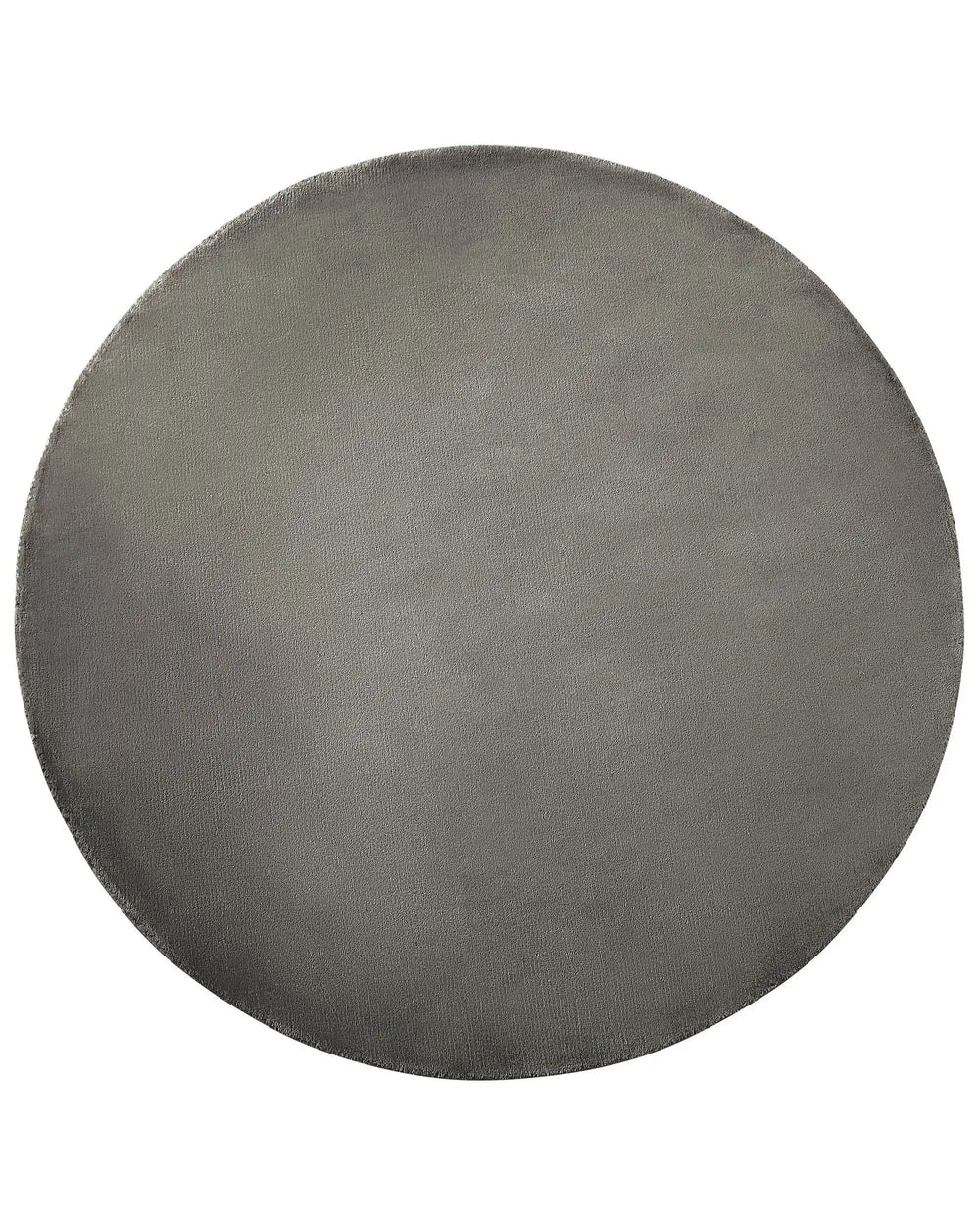 Rug Dark Grey Viscose Round 140 cm Hand Tufted Low Pile Modern Beliani
