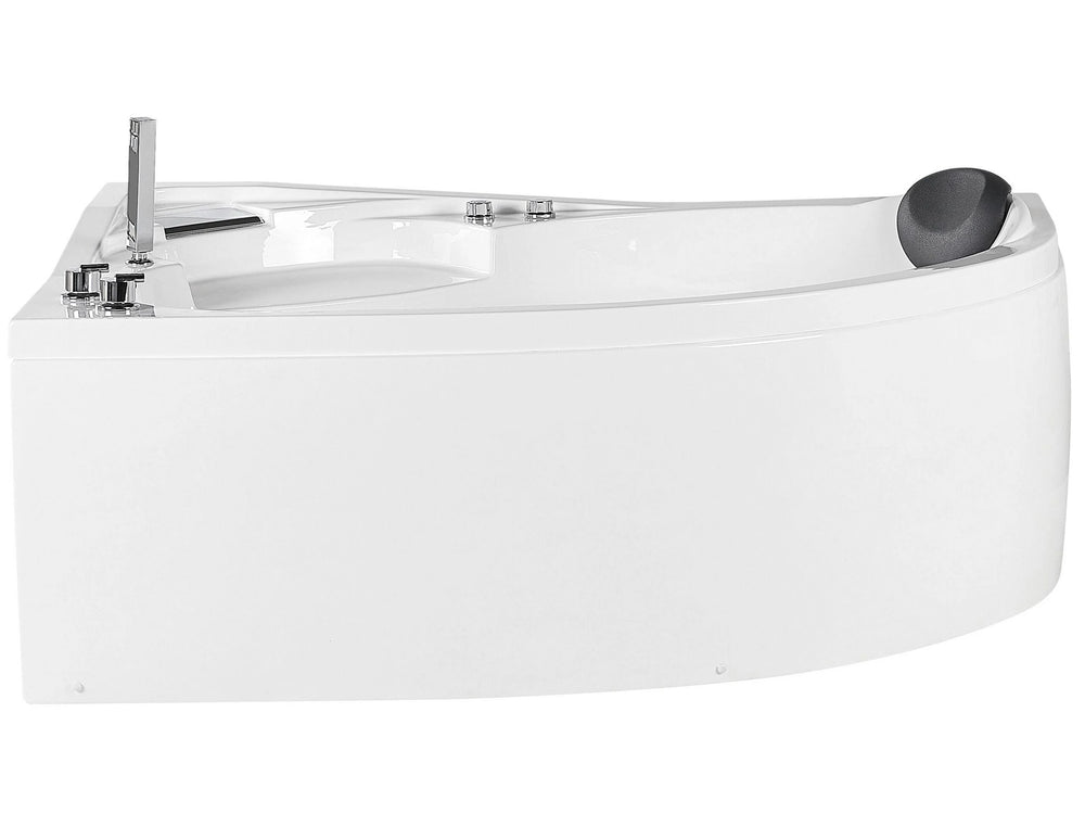 Right Corner Whirlpool Bath White Acrylic with LED Lights Hydromassage Shower Head Headrest Beliani
