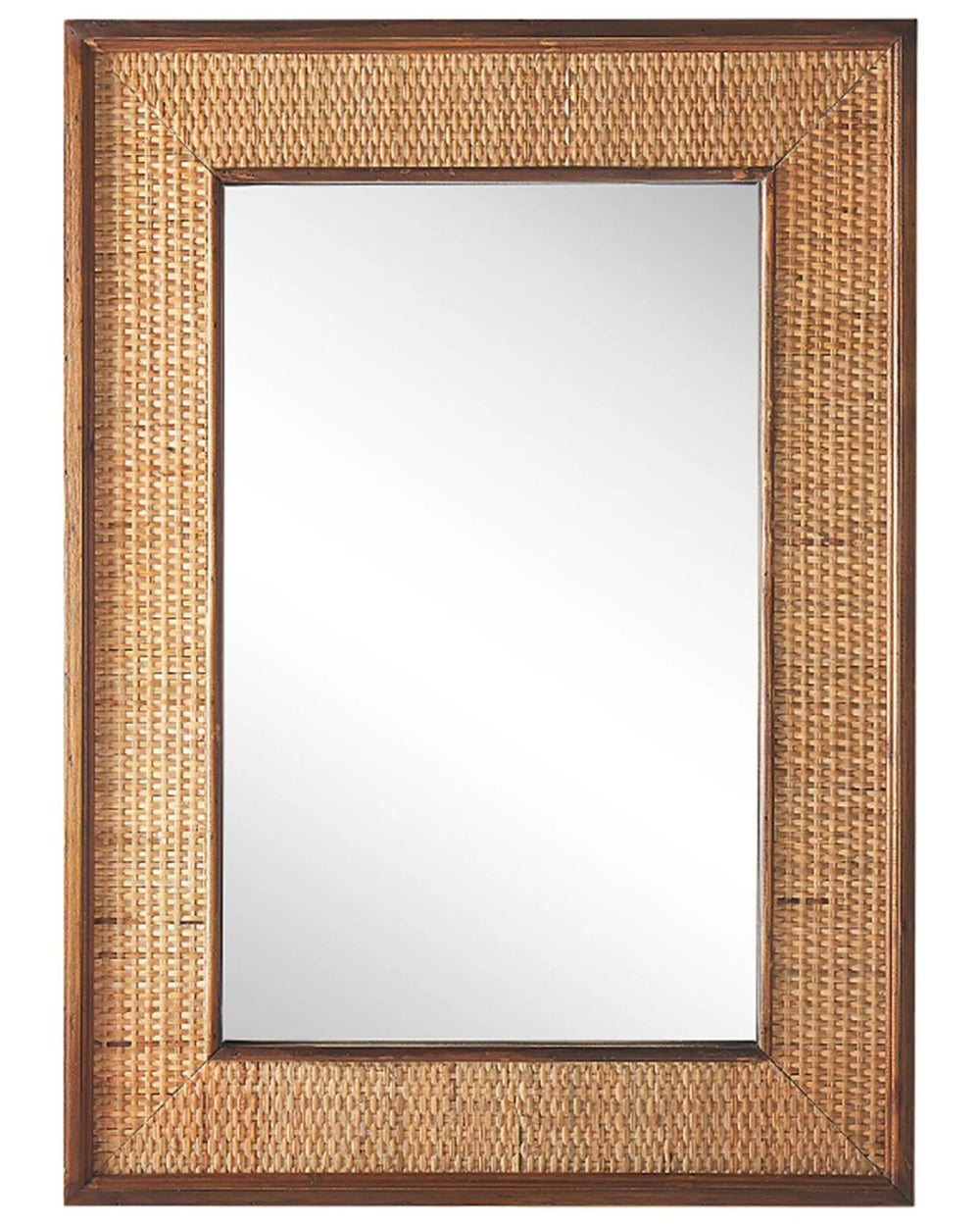 Wall Mirror Light Wood Rectangular 54 x 74 cm Solid Wood Handmade Fir Frame Bamboo Basket Weave Boho Modern Beliani