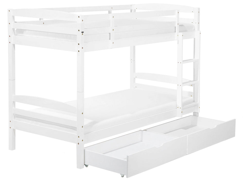 Double Bunk Bed with Drawers White Pine Wood EU Single Size 3ft High Sleeper Children Kids Bedroom Beliani is backordered and will ship as soon as it is back in stock.