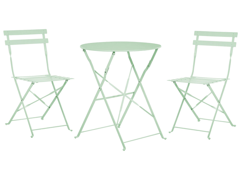 3 Piece Bistro Set Mint Green Metal Folding Slatted Seat Back Outdoor Beliani