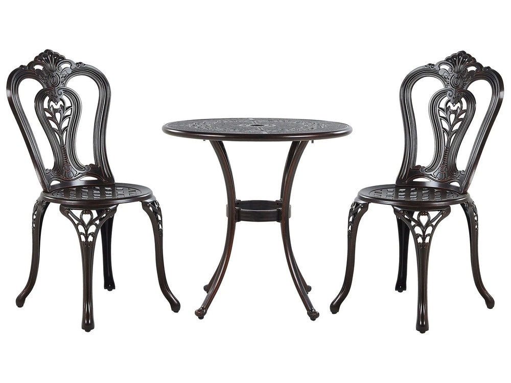 Bistro Set Brown Aluminium Garden Outdoor 2 Seater Table 65 cm 2 Chairs Vintage Beliani