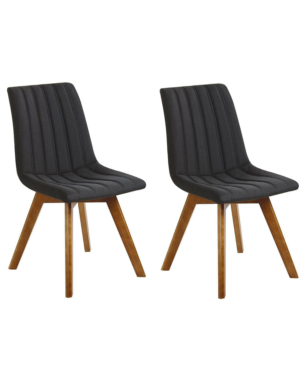 Set of 2 Chairs Black Polyester Fabric Dark Solid Wood Legs Vertical Padding Curved Back Beliani is backordered and will ship as soon as it is back in stock.