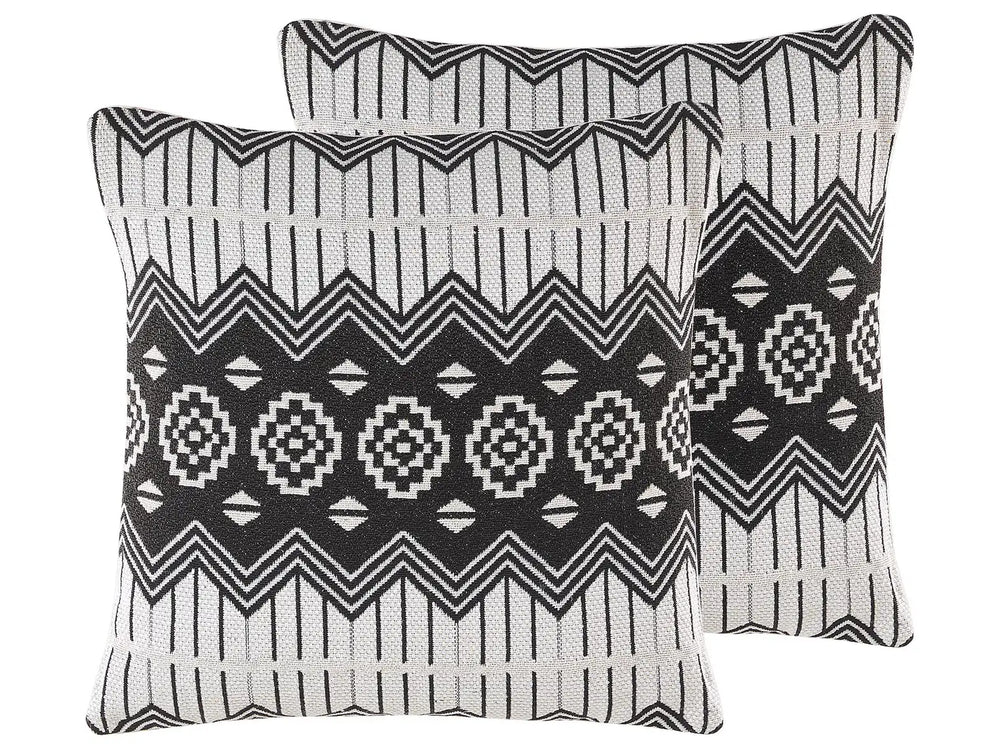 Set of 2 Scatter Cushions Black And White Cotton 45 x 45 cm Removable Cases with Polyester Filling Beliani