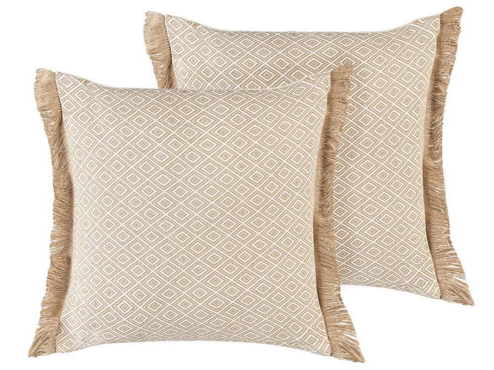 Set of 2 Decorative Cushions Beige Geometric Pattern 45 x 45 cm Modern Boho Decor Accessories Beliani