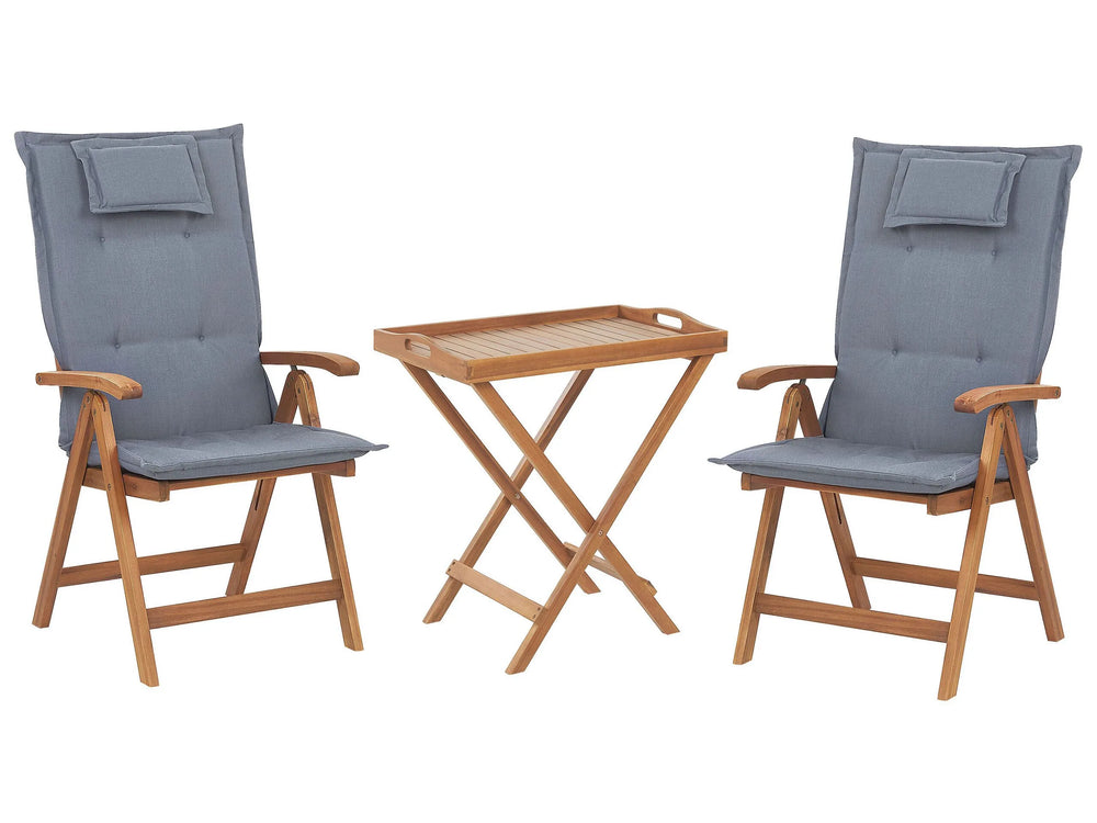Garden Bistro Set Acacia Wood Table 2 Chairs with Blue Cushions UV Resistant Foldable Beliani