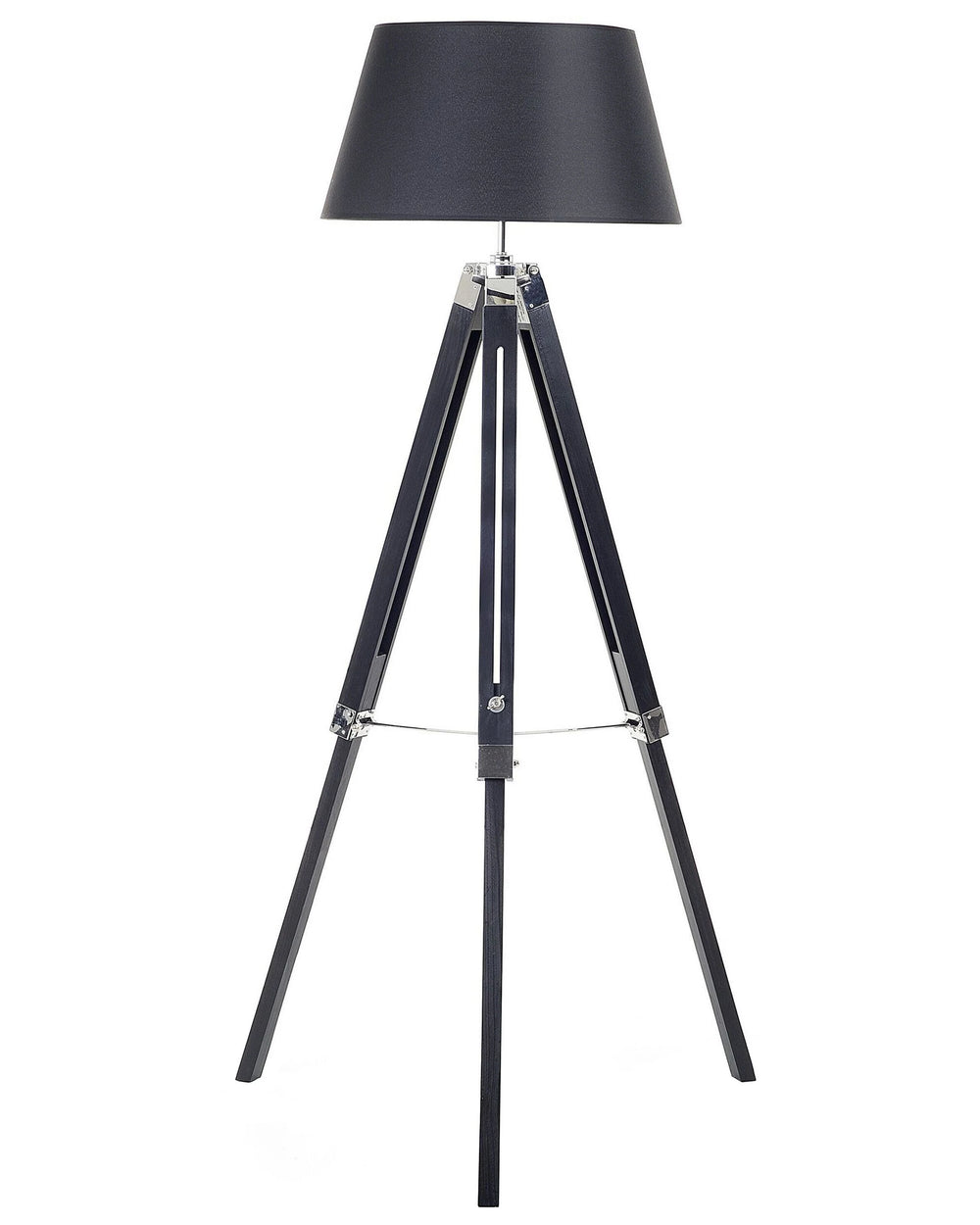 Floor Lamp Black Polycotton Shade Wooden Legs 143 cm Tripod Modern Industrial Style Living Room Bedroom Beliani
