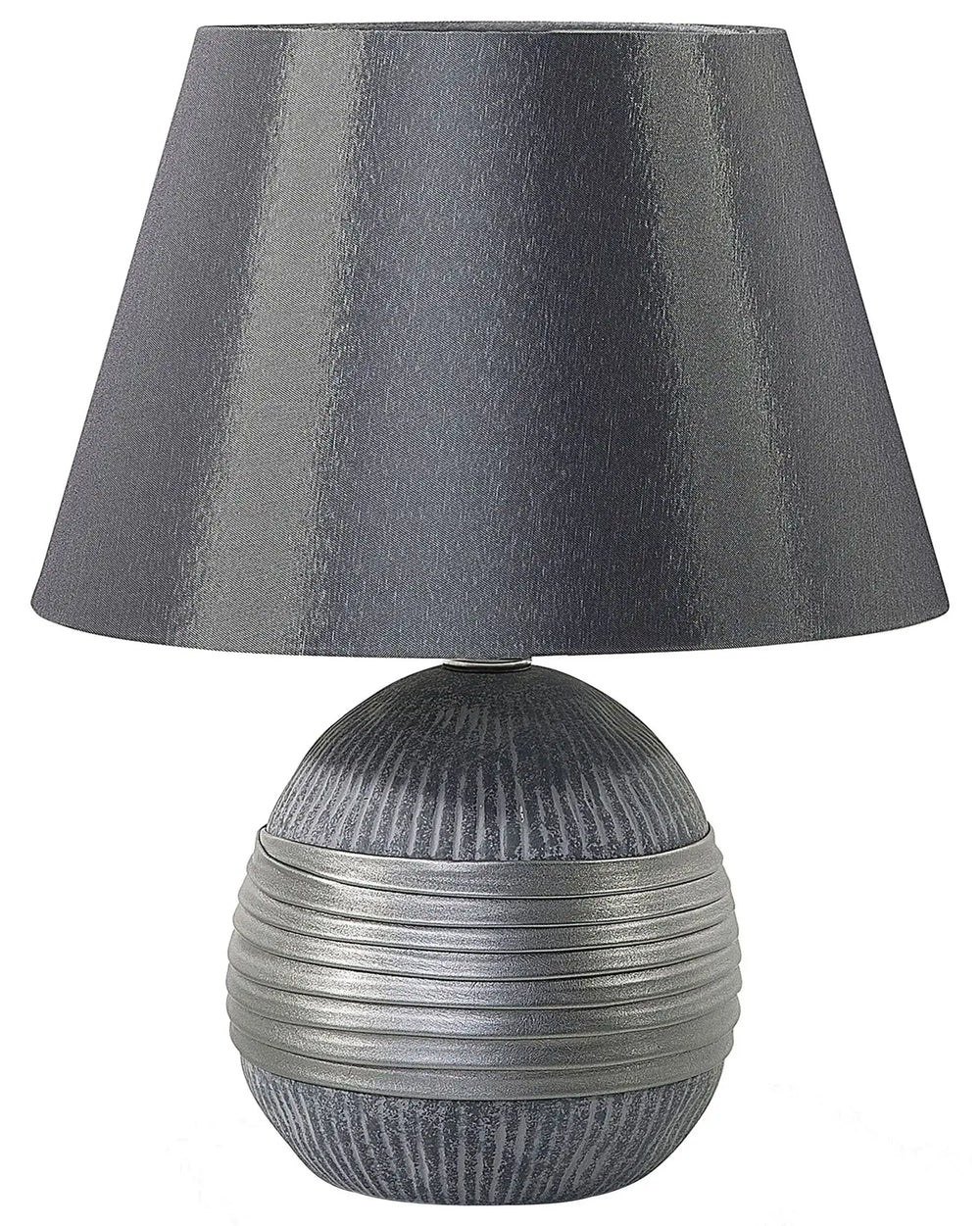 Table Lamp Silver Ceramic Base Faux Silk Cone Shade Bedside Table Lamp Beliani
