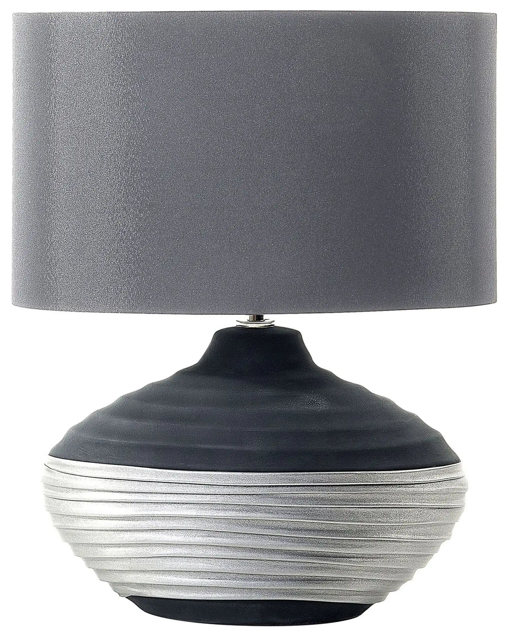 Table Lamp Grey Ceramic Base Faux Silk Drum Shade Bedside Table Lamp Beliani