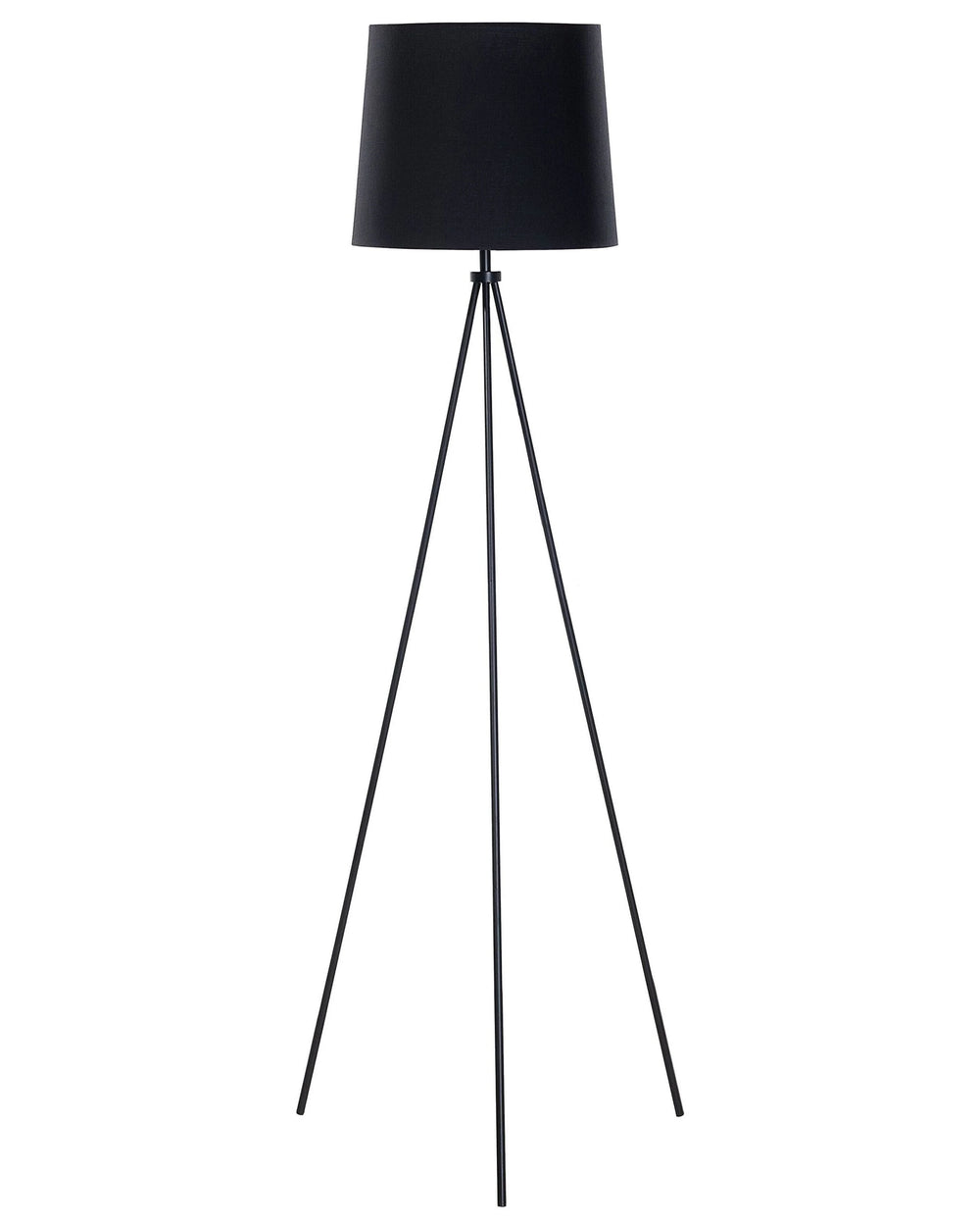 Floor Lamp Black Metal 149 cm Tripod Polycotton Drum Shade Modern Design Beliani