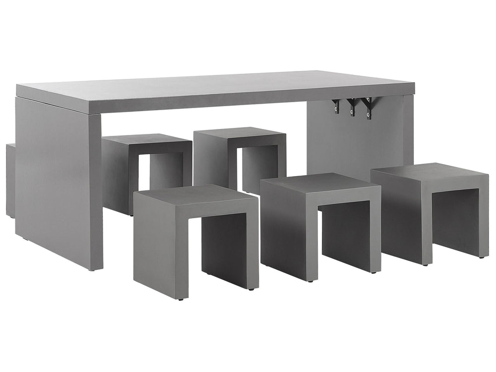 Garden Dining Set Grey Concrete Rectangular Table 6 Stools 6 Seater Water Resistant Beliani