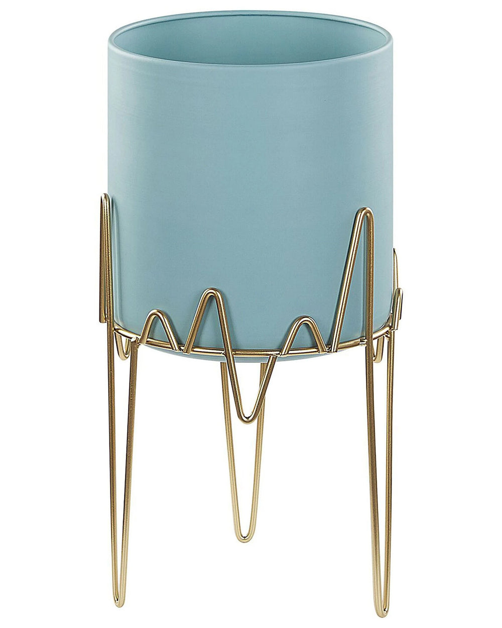 Plant Stand Blue with Gold Iron 19 x 19 x 39 cm Indoor Outdoor Metal Flower Pot UV Resistant Modern Industrial Standing Planter Beliani