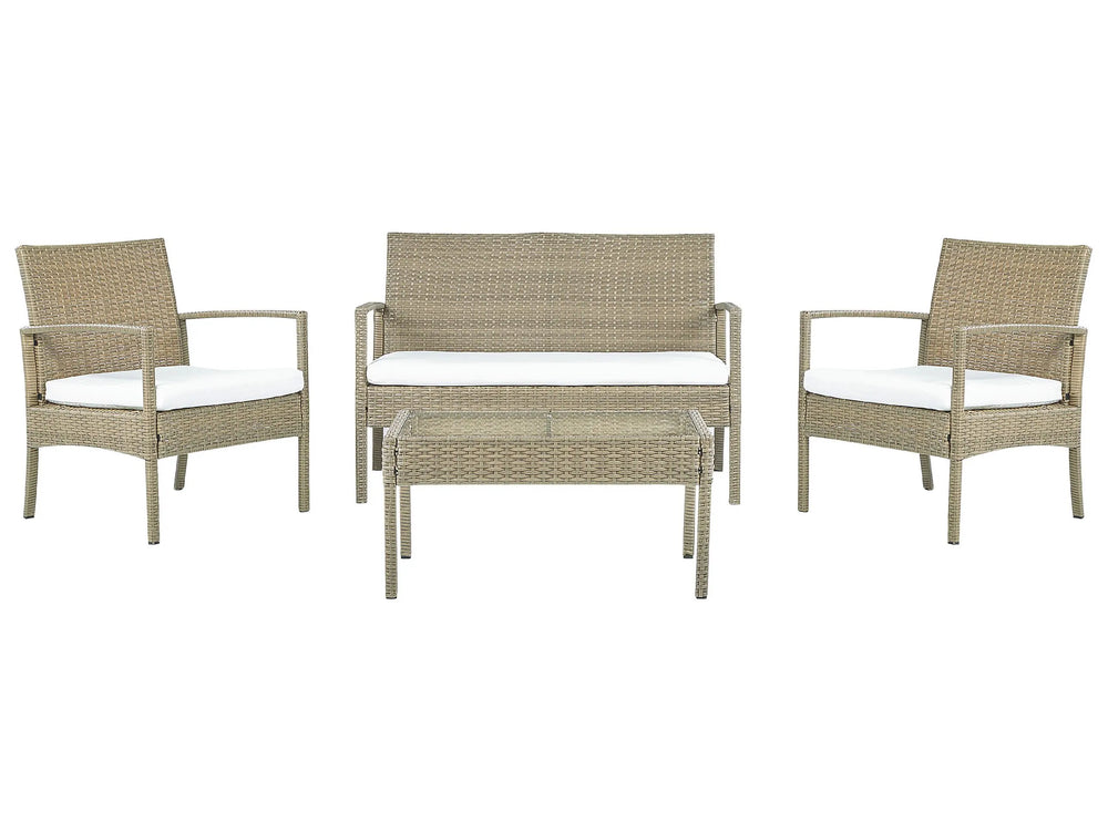 Garden Sofa Set Brown Faux Rattan with White Cushions with Coffee Table 4 Seater Beliani