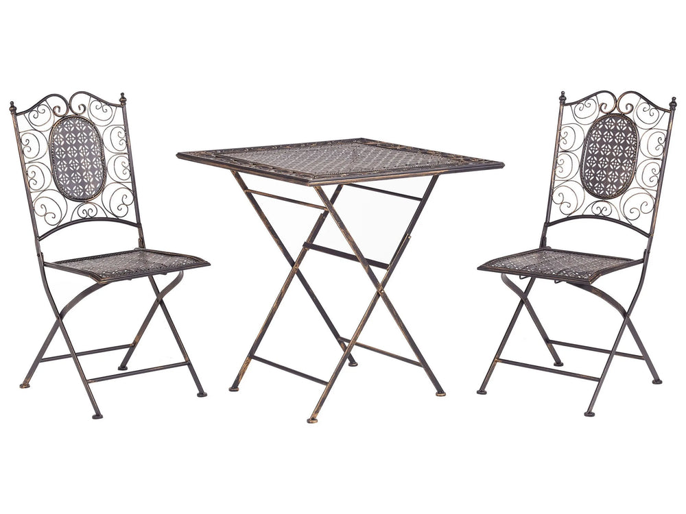 Garden Bistro Set Black Iron Foldable Distressed Metal 2 Chairs Table Outdoor UV Rust Resistance French Retro Style Beliani