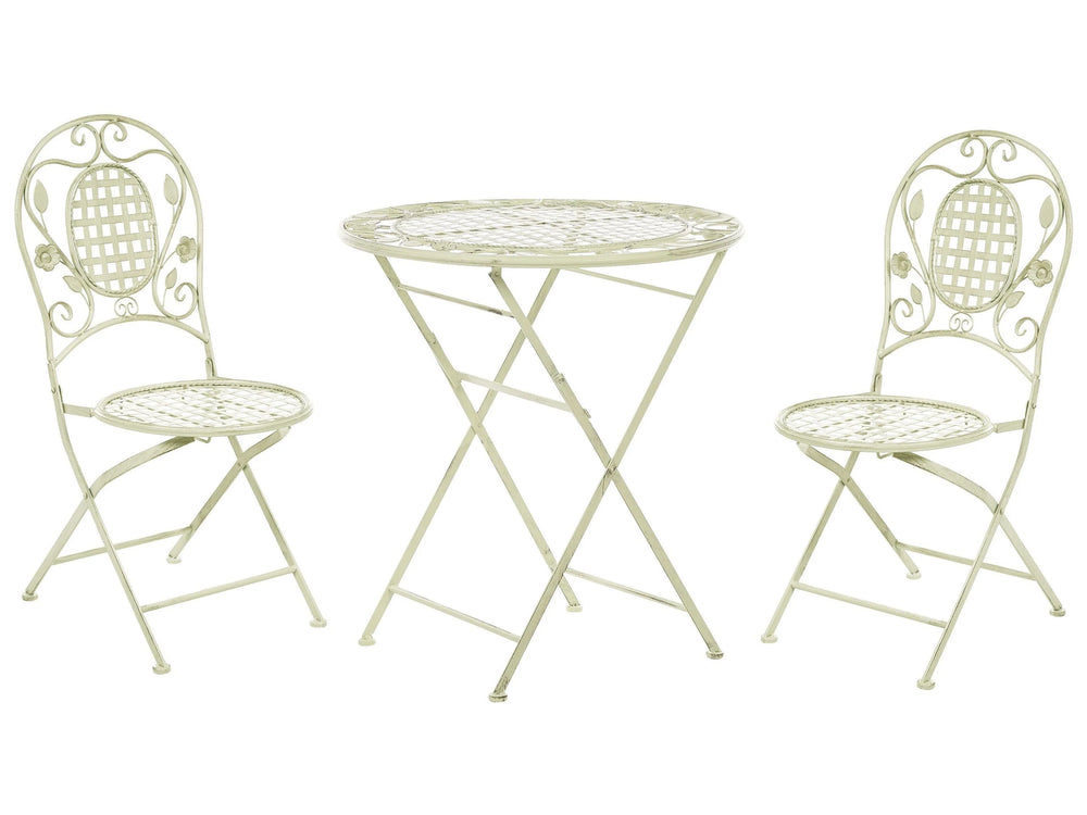 Garden Bistro Set Light Green Iron Foldable Distressed Metal 2 Chairs Table Outdoor UV Rust Resistance French Retro Style Beliani