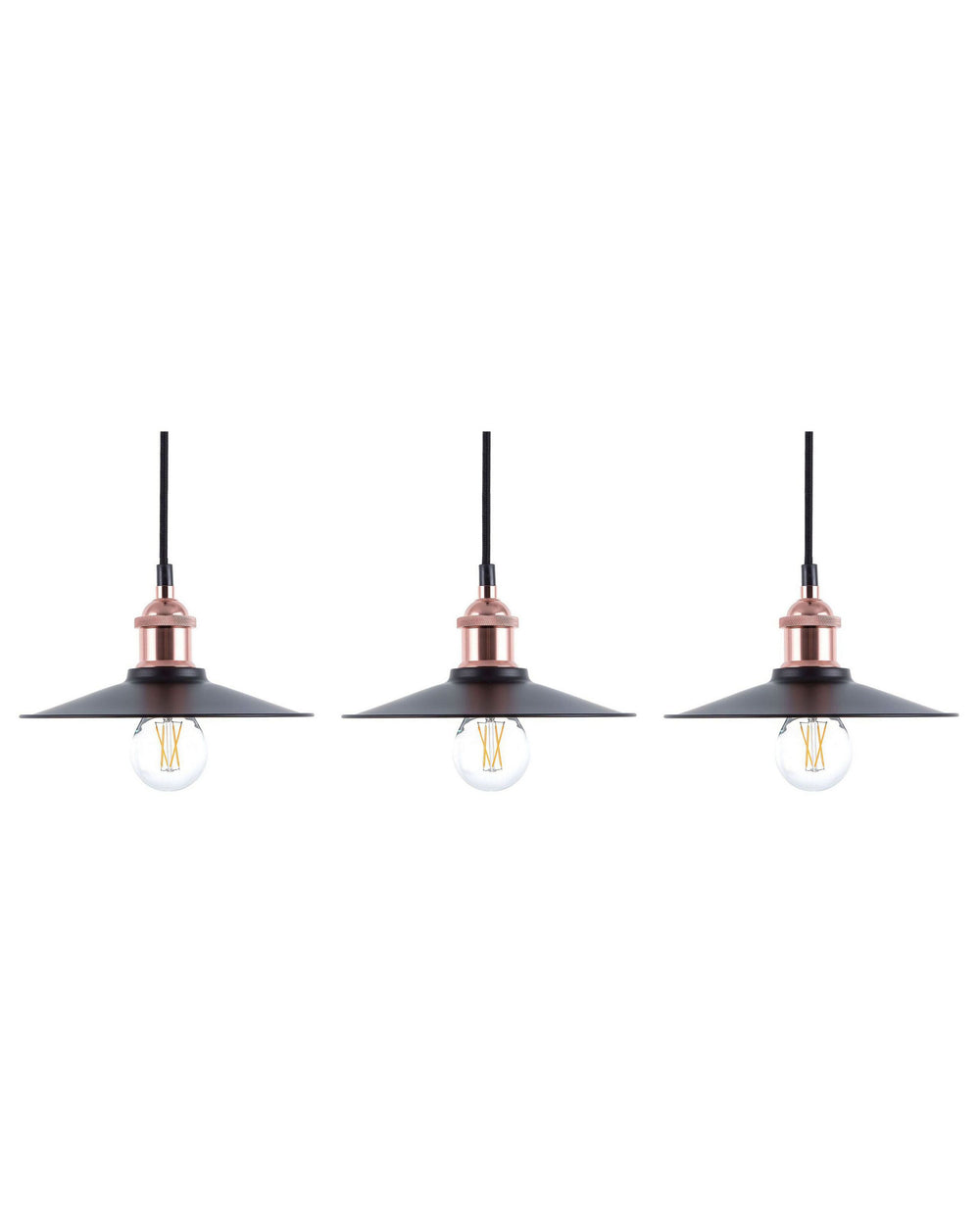 Set of 3 Pendant Lamps Black Metal Industrial Style Ceiling Light 22 cm Beliani