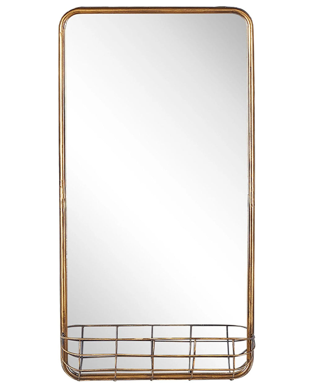 Wall Mirror Gold Iron Metal Frame 40 x 80 cm Wire Storage Basket Glam Beliani