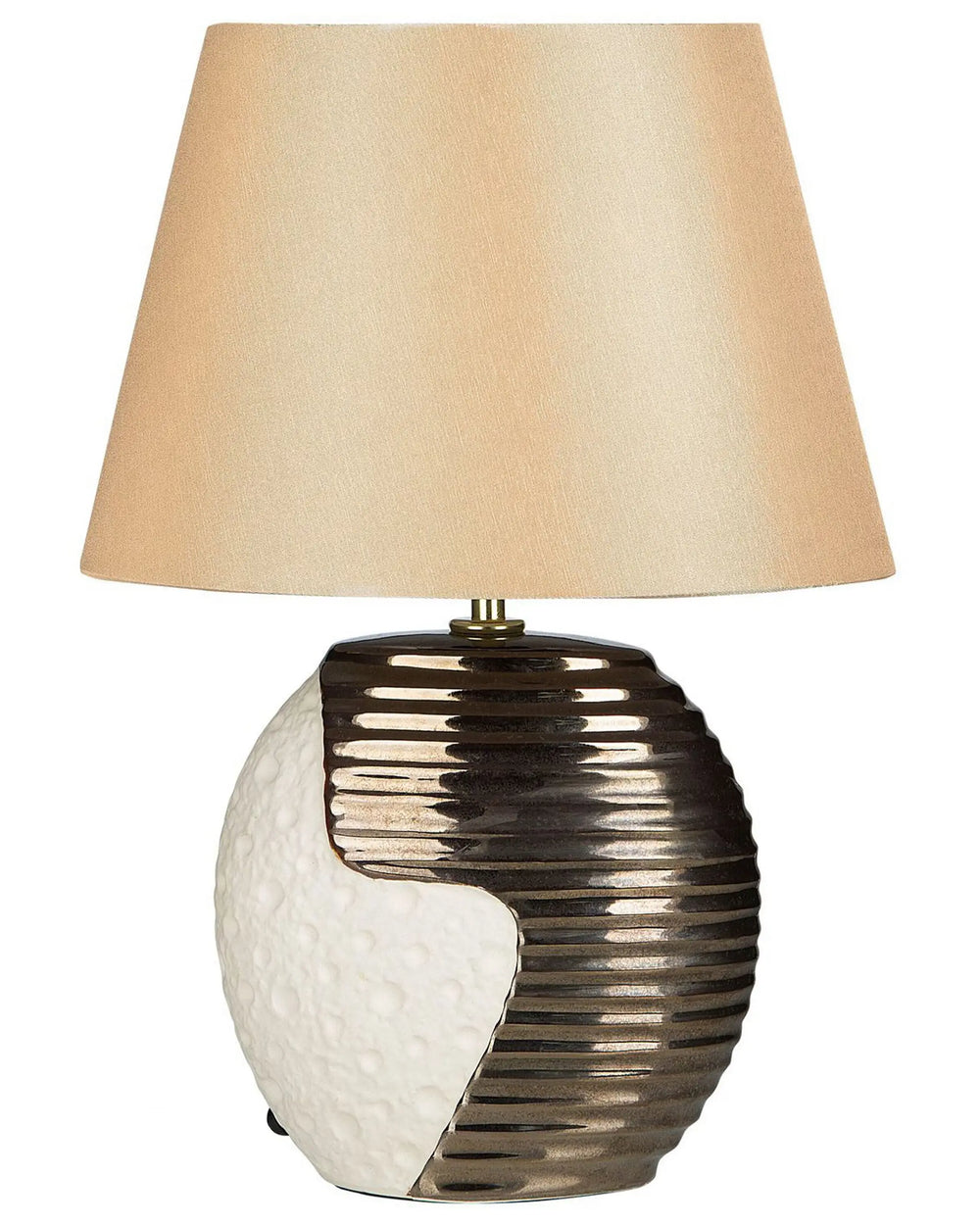 Table Lamp Gold Ceramic Base Fabric Drum Shade Bedside Table Lamp Beliani
