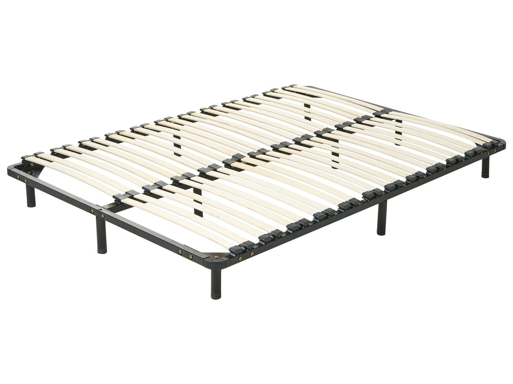 Freestanding Bed Base EU Super King 6ft Wooden Slats Black Steel Frame with Legs Wooden Slats Beliani