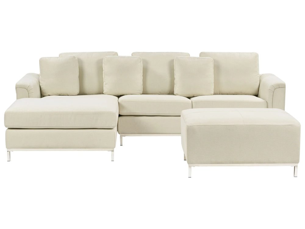 Corner Sofa Beige Fabric Upholstered with Ottoman L-shaped Right Hand Orientation Beliani is backordered and will ship as soon as it is back in stock.
