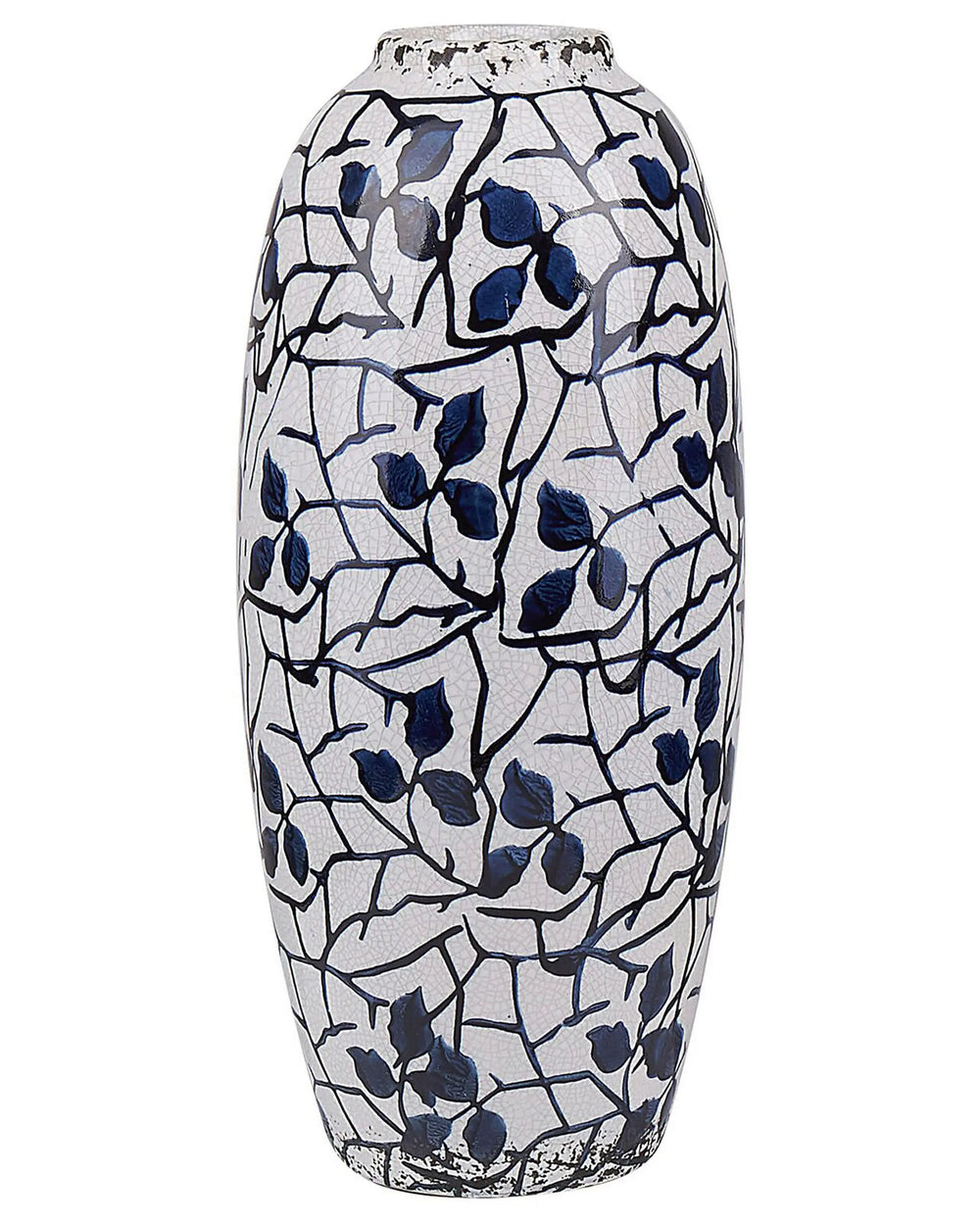 Flower Vase White and Blue Stoneware Home Accessory Waterproof Floral Pattern Retro Style Distressed Beliani